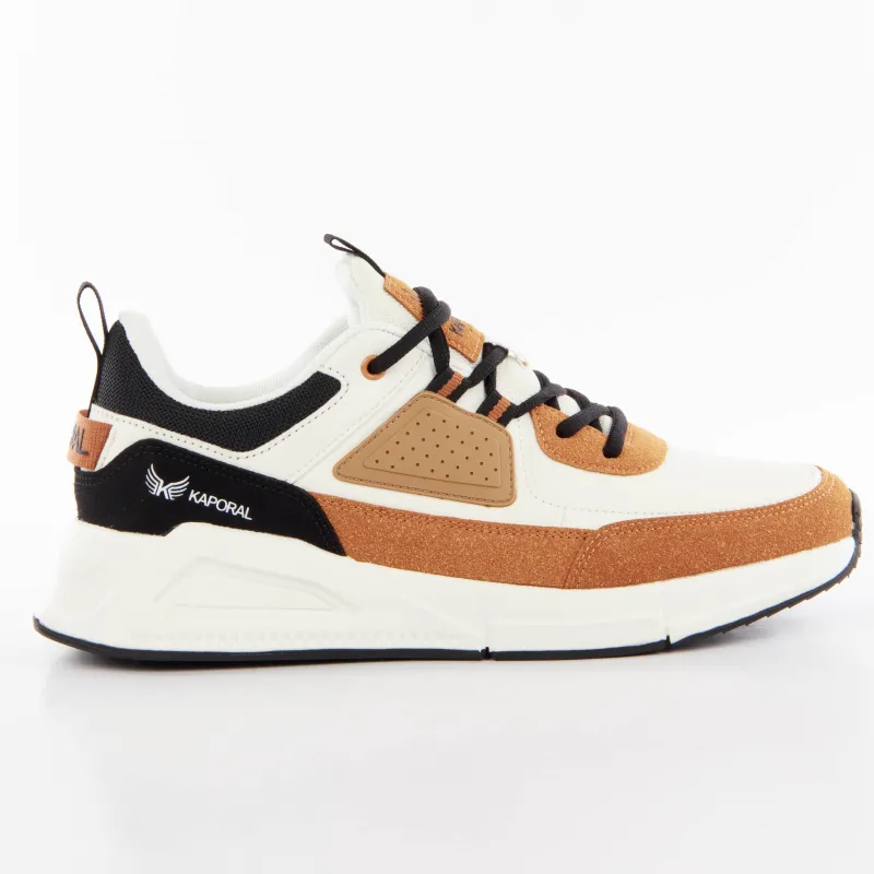 Les baskets pour homme Kaporal Dolpi arborent une combinaison de couleurs blanc, noir et camel, offrant un style à la fois moderne et polyvalent. Elles sont dotées d'une tige en textile et d'une semelle synthétique, assurant confort et durabilité. La fermeture à lacets garantit un ajustement sécurisé.