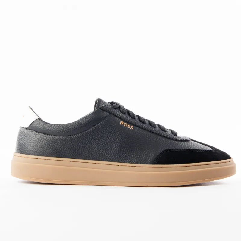 BOSS Kieran Tenn – Baskets en cuir grainé avec détail contrastant