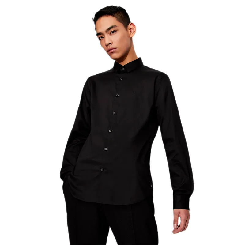 Apportez une touche de style raffiné et contemporain à vos tenues avec cette chemise Armani Exchange signature. Conçue en coton extensible noir, elle allie confort, élégance et liberté de mouvement. Sa coupe ajustée et son logo AX brodé sur la poitrine en font une pièce emblématique et polyvalente, idéale aussi bien pour vos looks casual que pour vos sorties habillées.