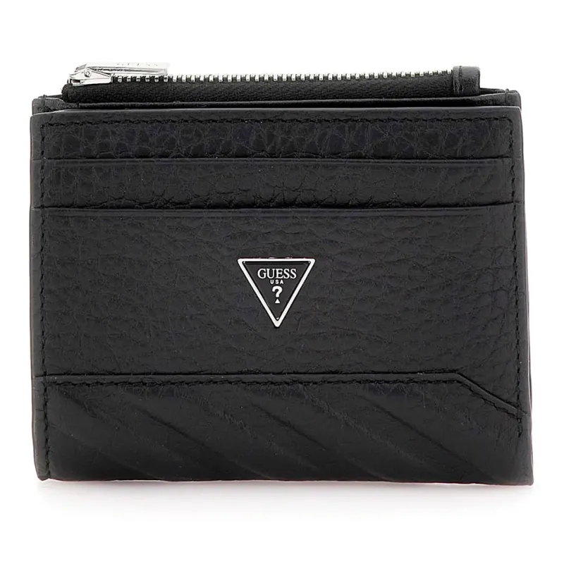 • Porte-cartes Torino Guess homme – collection élégante • Cuir véritable 100 % – qualité premium et résistante • Fermeture bouton et zip – sécurité optimale • Pièces métalliques argentées – finition sophistiquée • Dimensions : 9,4 × 1,5 × 10,4 cm – format compact • Fentes pour cartes de crédit – organisation pratique • Logo triangulaire en métal sur le devant – détail signature