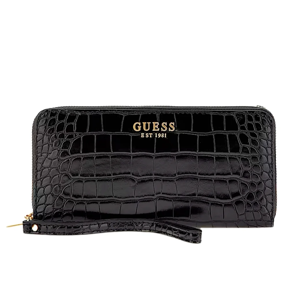 Portefeuille Guess long à imprimé croco Laurel luxe.
