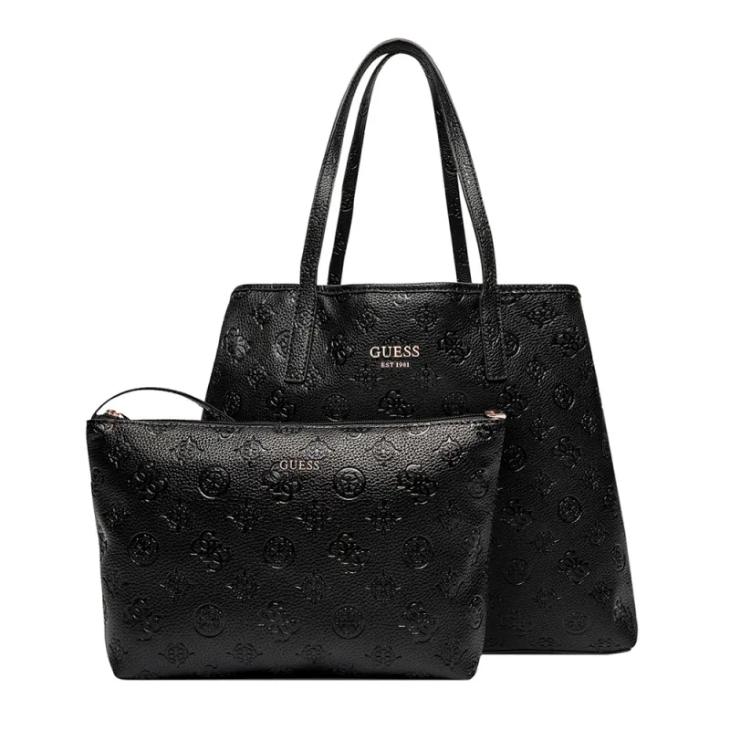 Sac Shopper Guess Vikky Logo Embossé – Élégance et Polyvalence. Ajoutez une touche d'élégance à votre quotidien avec le sac shopper Guess Vikky Logo Embossé en noir classique. Ce sac allie design intemporel et fonctionnalités pratiques, idéal pour toutes les occasions.