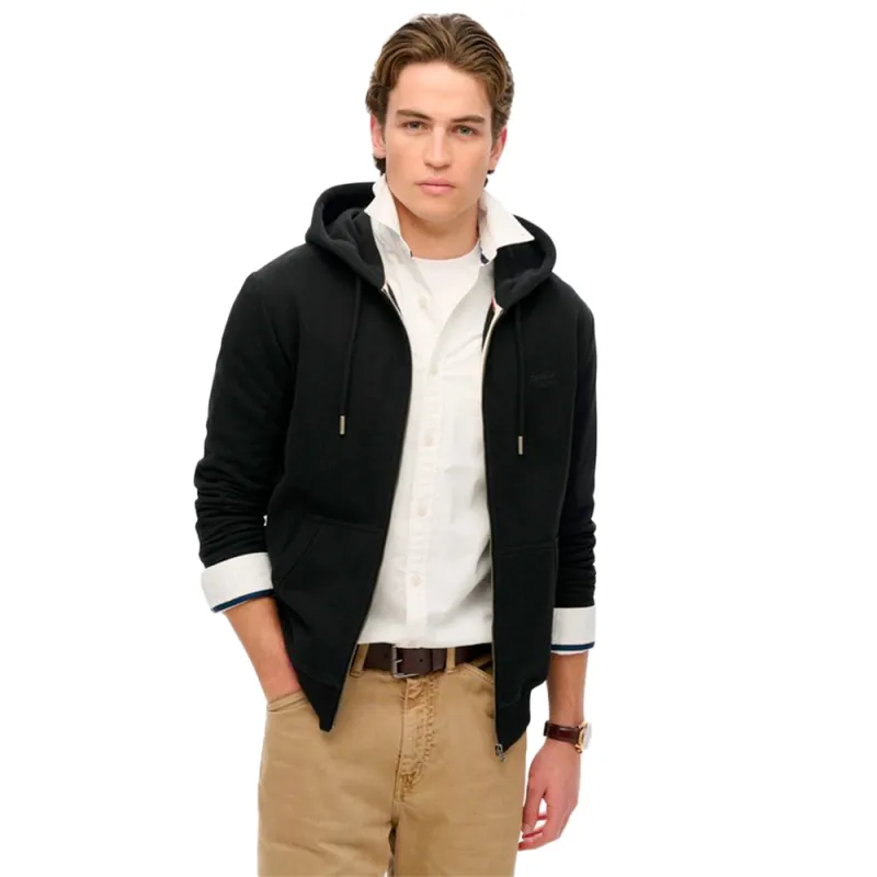 Sweatshirt à Capuche Zippé Superdry Logo Essential est une pièce polyvalente et confortable, idéale pour compléter toutes les garde-robes. Confectionné avec une coupe slim pour un look ajusté, ce sweat mi-épais inclut une doublure légèrement brossée pour un confort doux, une capuche à cordon de serrage, ainsi que des poignets et ourlet côtelés. Son design minimaliste avec un logo Essential en fait un incontournable facile à porter.