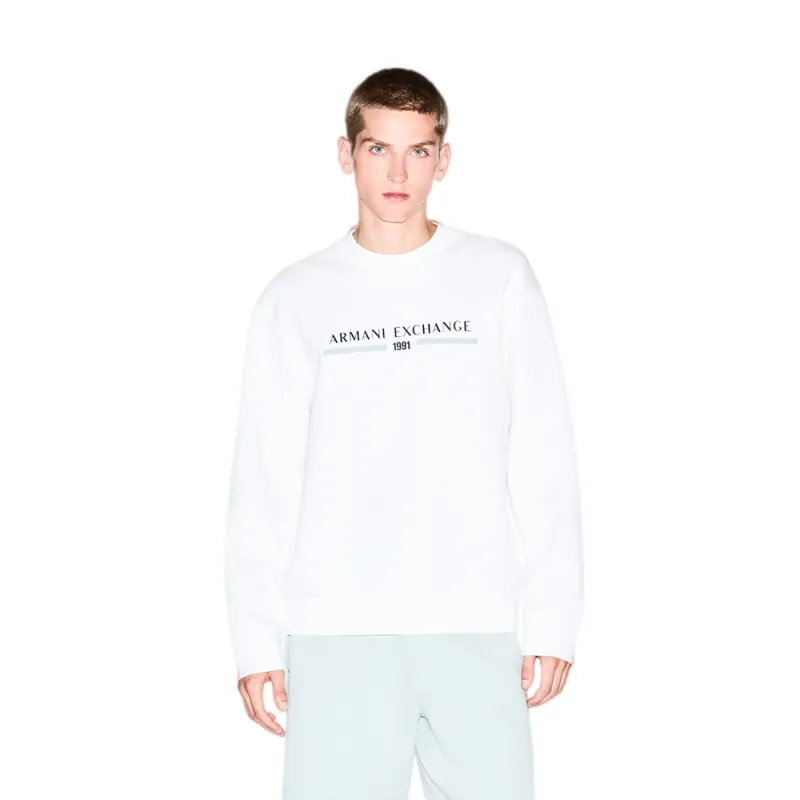 Sweatshirt Basic Armani Exchange blanc, sweatshirt homme coton, sweatshirt casual élégant, sweatshirt Armani Exchange original.
